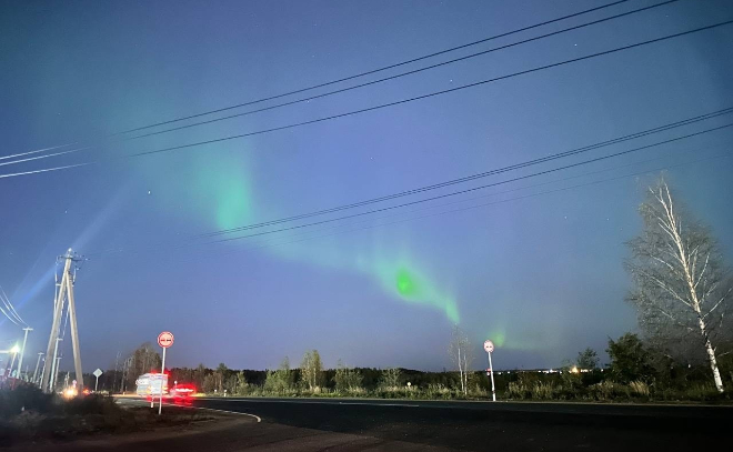 Жители Бугров засняли северное сияние