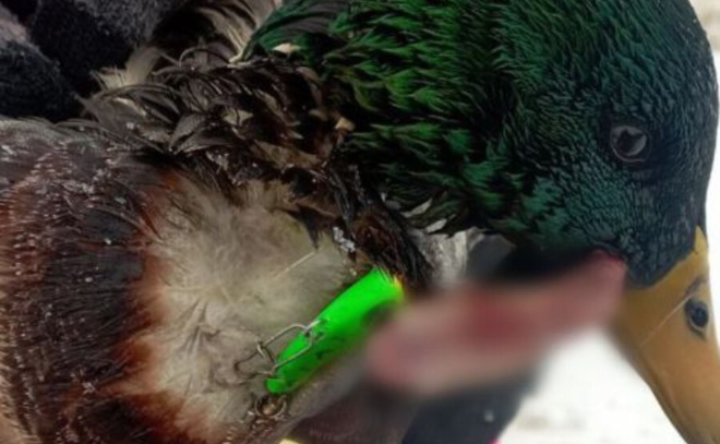 В Кудрово заметили утку с блесной в языке