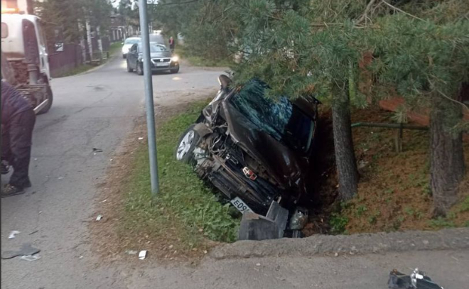 Вечером в пятницу, 3 октября, во Всеволожске произошла авария с участием двух легковушек. От удара одна из машин съехала с дороги в кювет и перевернулась.