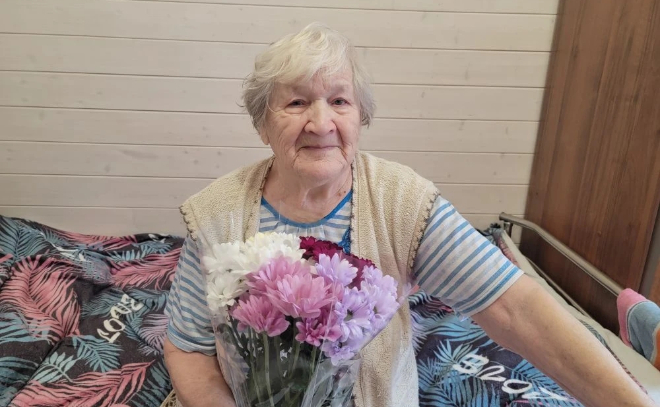 Представители администрации Заневского городского поселения посетили Надежду Николаевну с букетом хризантем и теплыми пожеланиями.