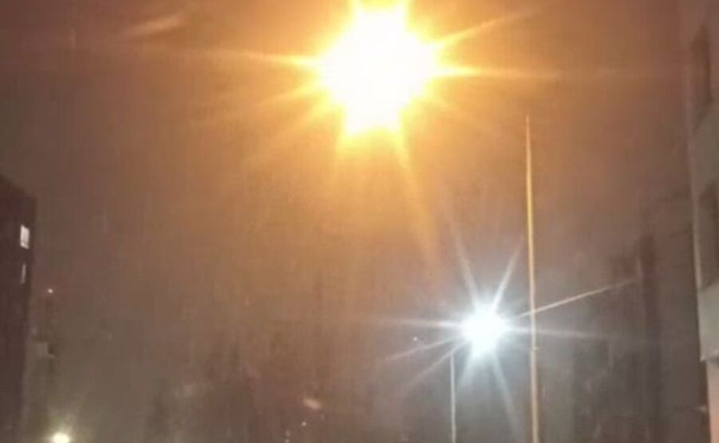 Местные жители засняли вечерний снегопад.